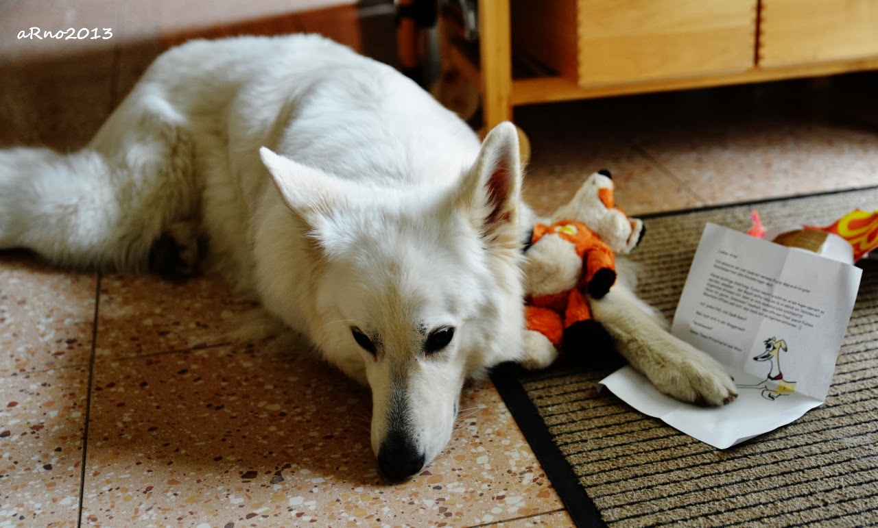 Danke schön, liebe Lila und liebe Johanna! Unsere Beziehung läuft noch sehr gut, Fuchsi hat noch beide Augen! Natürlich schaut die Mamma (diese Spannerin!) immer zu, dass ich nicht zu leidenschaftlich werde, aber ich bin doch ein wahrer Gentledog!