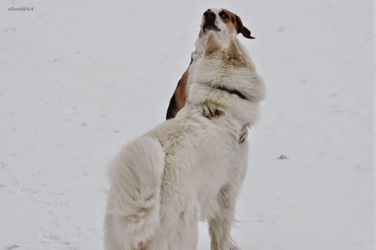 Ein traumhaftes Revier mit Schnee - eine kesse Freundin - eine liebe Menschenfrau - und viel Gerüche und Wildnis = das hört sich super an - und dann lockt ja noch die Mahlzeit ...